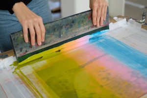Der Siebdruck bietet ein sehr weit gefächertes Spektrum an Möglichkeiten zur Gestaltung und ist ein Druckverfahren, bei dem Spontanität und Intuition eine entscheidende Rolle spielt.